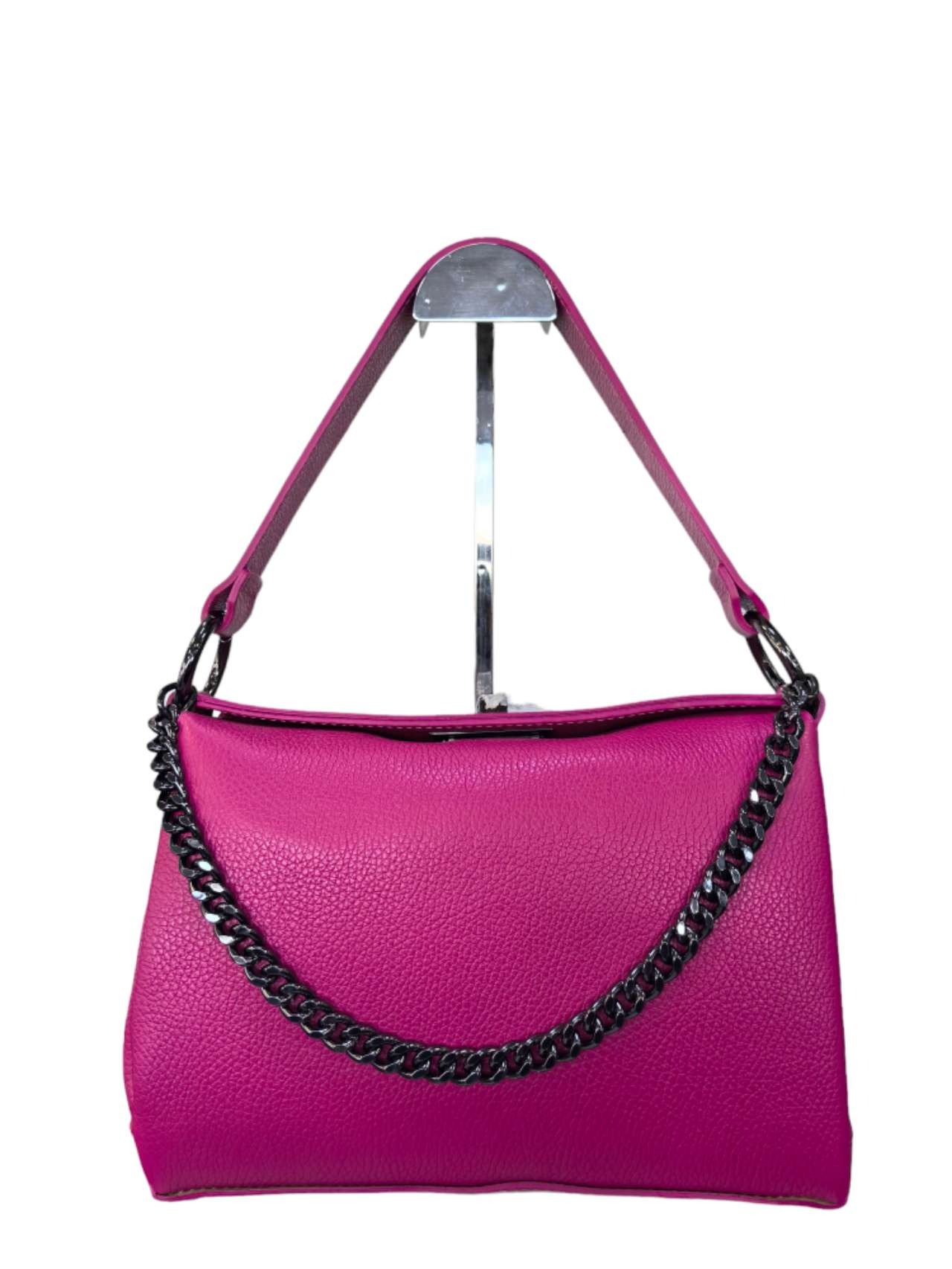 Genuine leather handbag. Made in Italy. Zip closure. Inside pocket with zip. Inside pocket with mobile phone. Shoulder strap in genuine leather. Gunmetal-colored metal accessories.