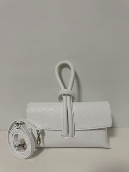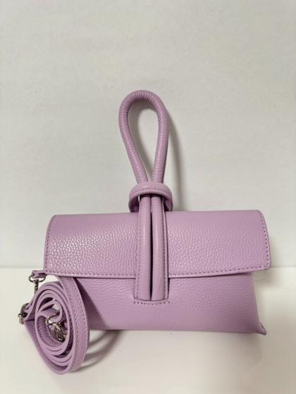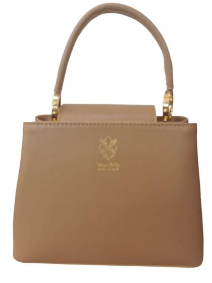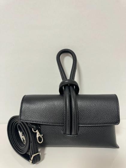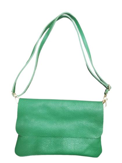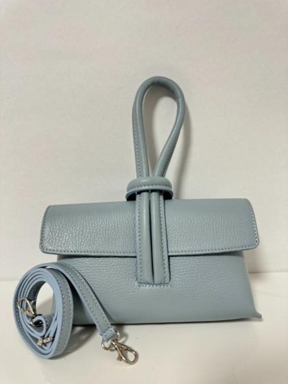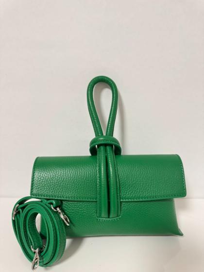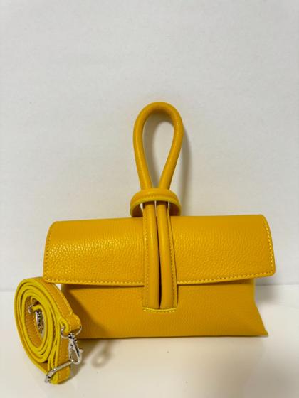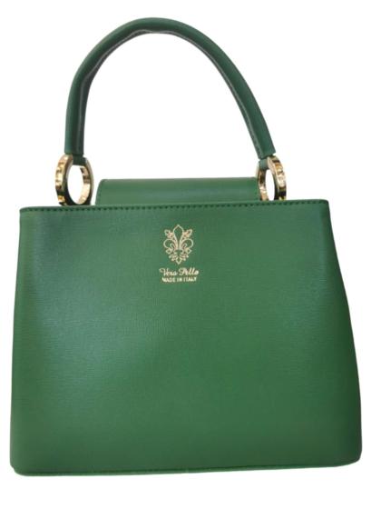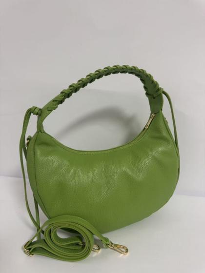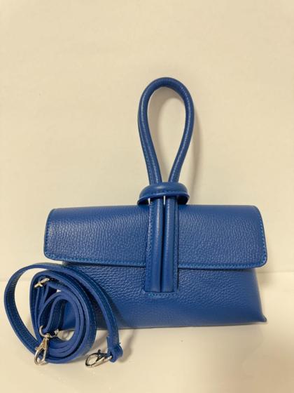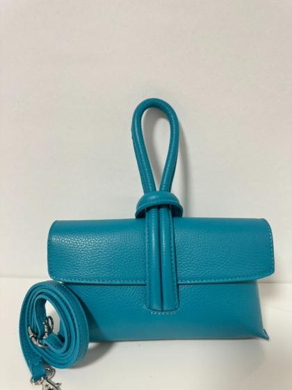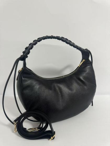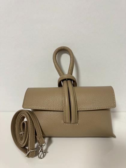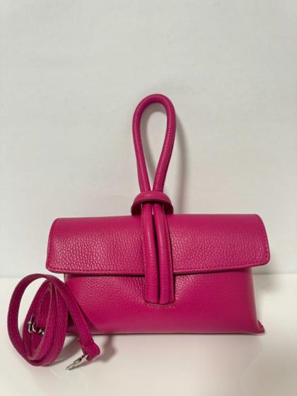 Leather handle bag. Made in Italy. Magnetic button closure. Internal zip pocket. Internal cell phone pocket. Adjustable shoulder strap. Gold accessories.