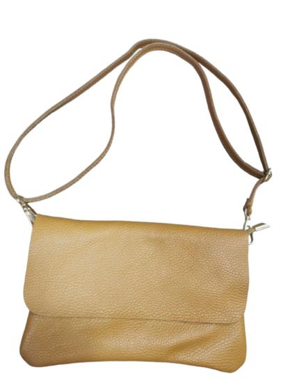 Shoulder bag in genuine dollar leather.Opened with caramida flap.Inside mobile phone pocket.Pocket with zippers.Adjustable leather shoulder straps.Gold accessories.Made in Italy.