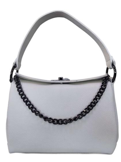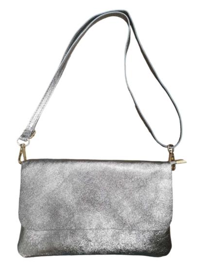Genuine leather handbag. Made in Italy. Internal zip pocket. Internal zipper pocket. Adjustable and removable shoulder strap in real leather. Gunmetal colored metal accessories.