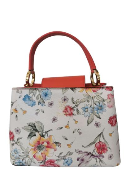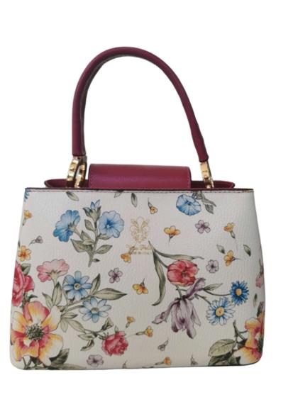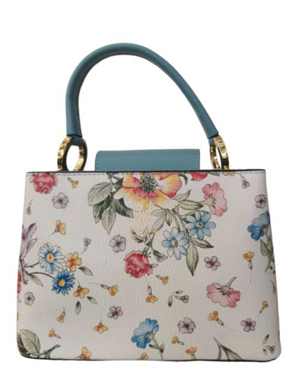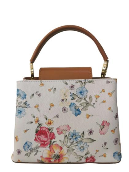 Genuine leather double handle bag. Genuine printed leather. Zip closure. Internal zip pocket. Internal cell phone pocket.