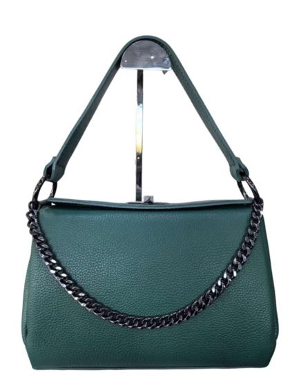 Shoulder bag in genuine leather, Made in Italy. Accessory flap closure. Gold chain strap.