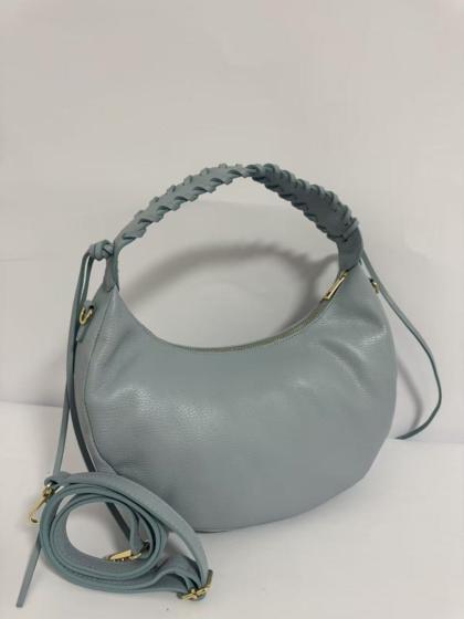 Genuine leather shoulder bag.Open zips and two side pockets.One main pocket with zips.Inside lining with zip pocket.Adjustable genuine leather shoulder straps.Silver accessories.Made in Italy.