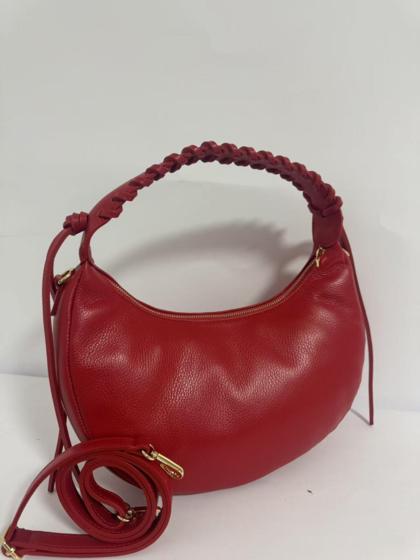 Genuine leather bag, Made in Italy. Zip closure. Inside pocket with zip, adjustable shoulder strap in removable leather, gold-colored metal accessories.
