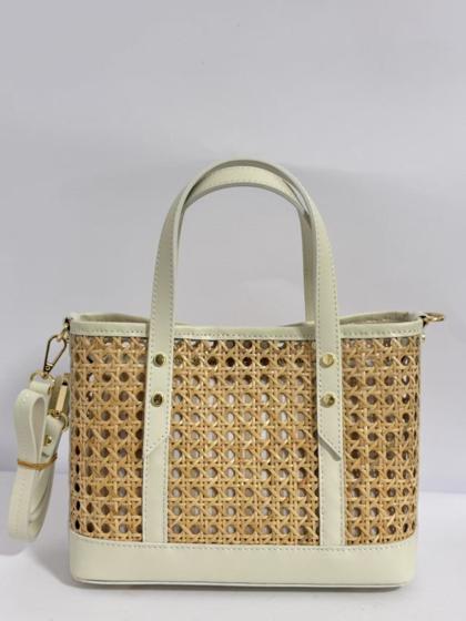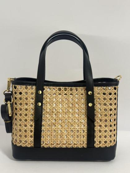 Genuine leather handbag with raffia. Closure with febia. Internal pocket for cell phone. Adjustable and removable shoulder strap in genuine leather.